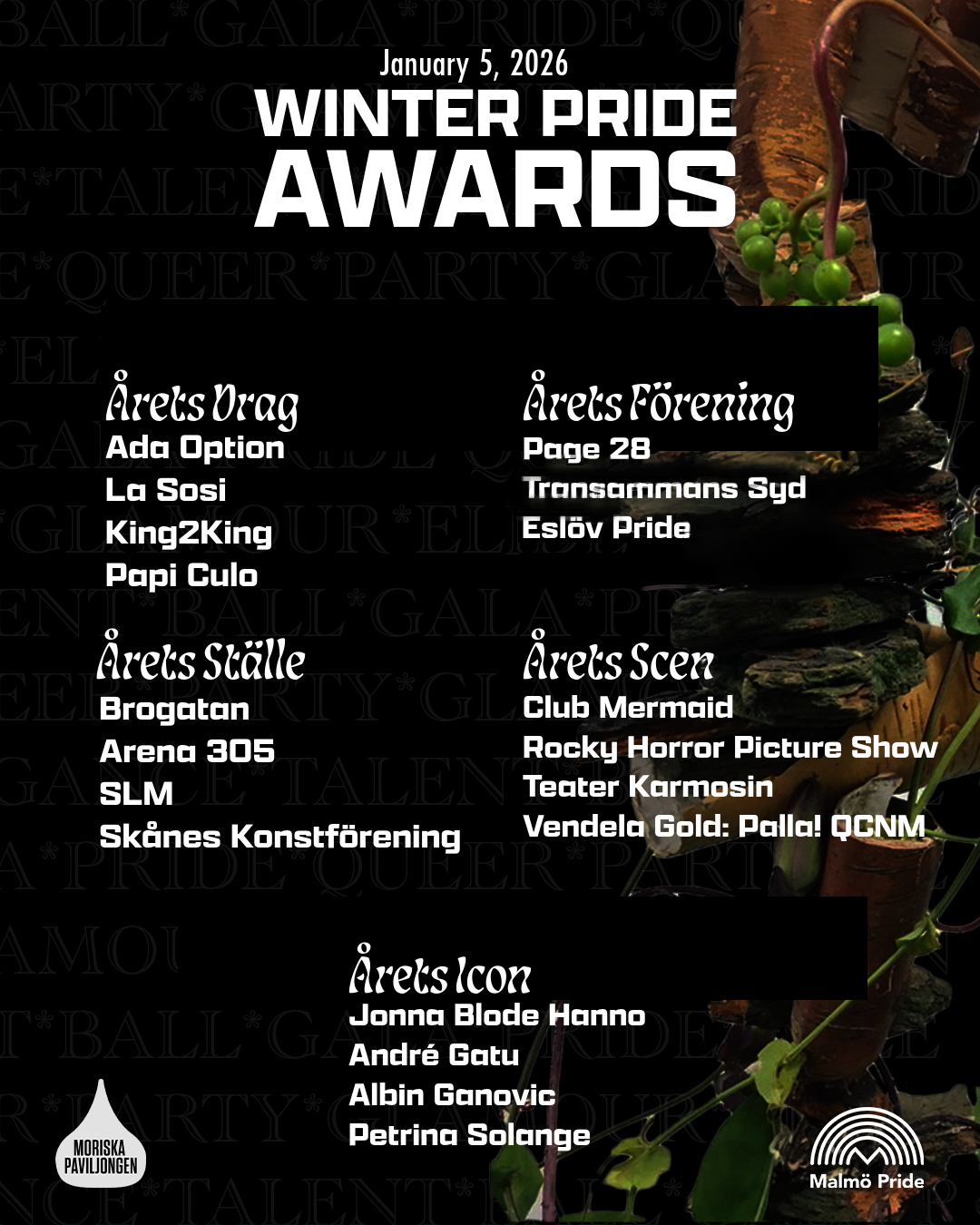 Vi ses på Moriska Paviljongen där vi minglar på röda mattan samt delar ut priser i stora salen - för visst vill vi lyfta Malmös queera ikoner och stöttepelare?